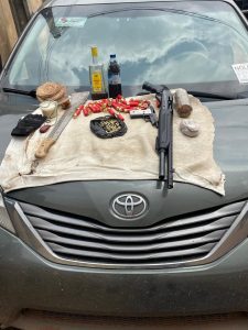“Exhibits recovered from the suspects include: one automatic pump-action shotgun, one Beretta pistol, 48 rounds of 9mm ammunition, 66 live cartridges, one cutlass, assorted criminal charms, one Toyota Sienna, two Lexus ES350 salon cars, and one Toyota Corolla salon car.