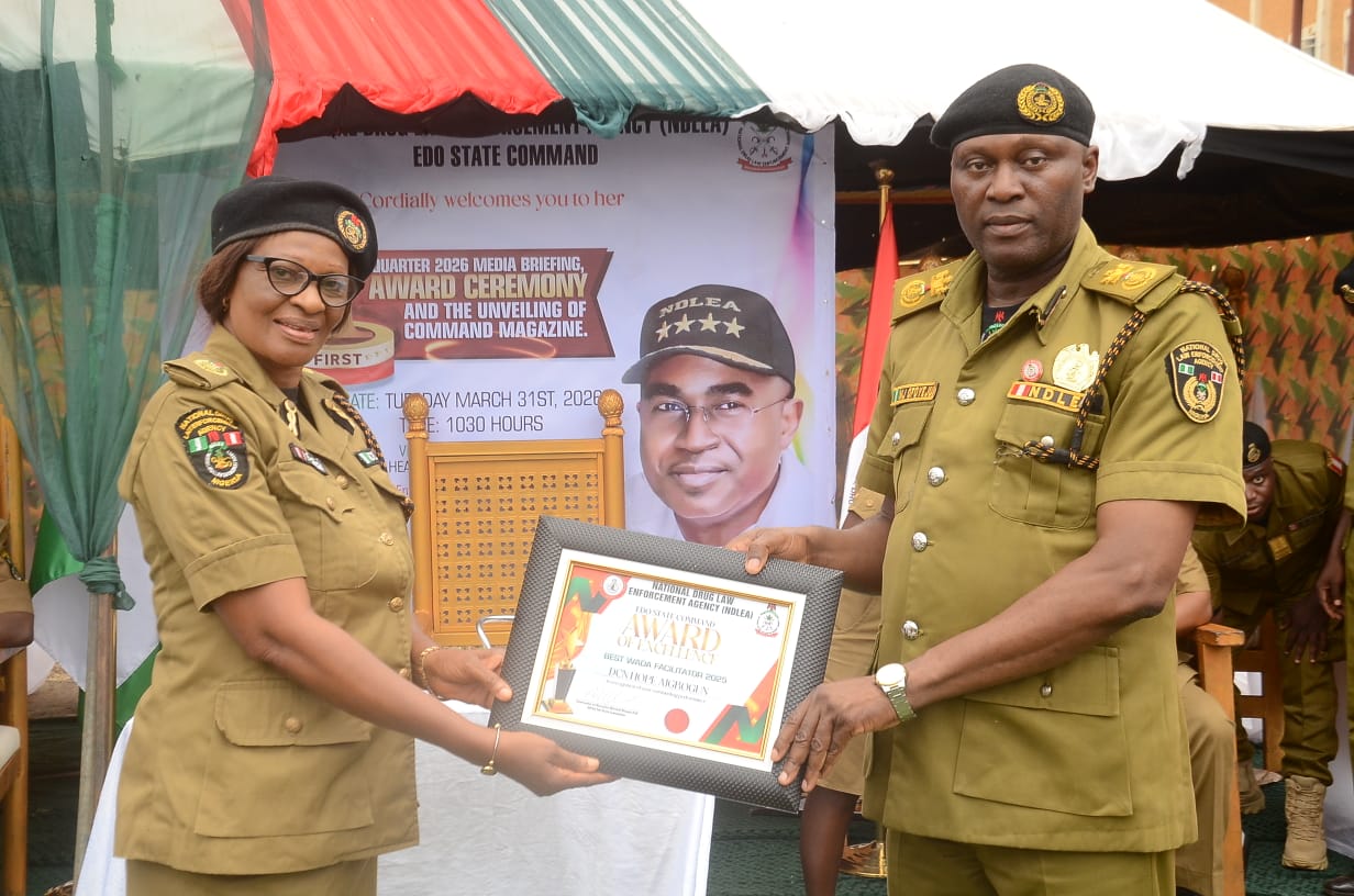 In a significant move acknowledging the role of the media in the fight against drug abuse, the command also presented awards to its Best Media Partners for 2025. The recipients are Adeyinka Adedipe of The Punch Newspapers; Bello Usman of Daily Trust Newspapers; Nafeesa Bello of the Edo Broadcasting Service; and Usman Aliyu of the News Agency of Nigeria (NAN).
