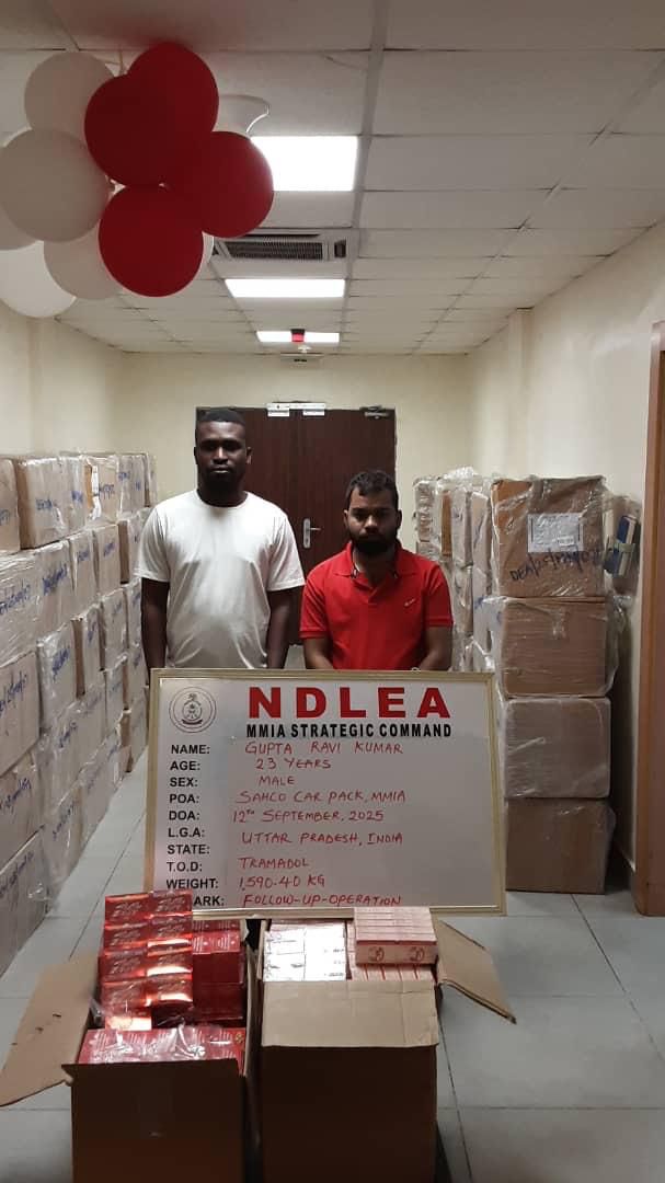 NDLEA ,the tramadol shipment worth Three Billion Nine Hundred and Ninety Million Naira (N3,990,000,000) in street value was imported from Delhi, India, disguised as multi-vitamins in 114 cartons and arrived the import shed of the Lagos airport on an on Ethiopian Airline flight on Monday 8th September 2025.