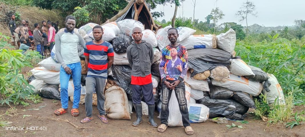 Four male suspects linked to the cannabis plantation were apprehended during the operation, while taking refuge at their tents located within the farm. Three of them are from Akwa Ibom State, while one hails from Delta State. They have been identified as Ebenizer E. Wang, 48 years old, from Uyo, Akwa Ibom State, and Oshare John, 45 years old, from Ughelli South, Delta State. Others are: Emmanuel Monday, 29,from Eket, Akwa Ibom State, and David Sunday, 30 , from Ugad, Akwa Ibom State.