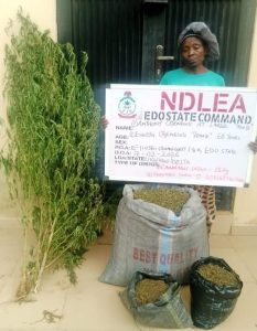 While 37kg skunk was seized from Mgbeme Ejeoma, 34, at Club Street, Ekeredjebor, Ughelli, Delta state on Tuesday 17th February, NDLEA officers in Edo state same day raided Etiosa camp in Owan West LGA where they destroyed 1,266.8475kg skunk on three farms. No less than 23kg of processed cannabis was equally recovered, with two suspects: a 68-year-old grandmother, Evelyn Ogenewu, and a 43-year-old, Friday Iruoje, apprehended.