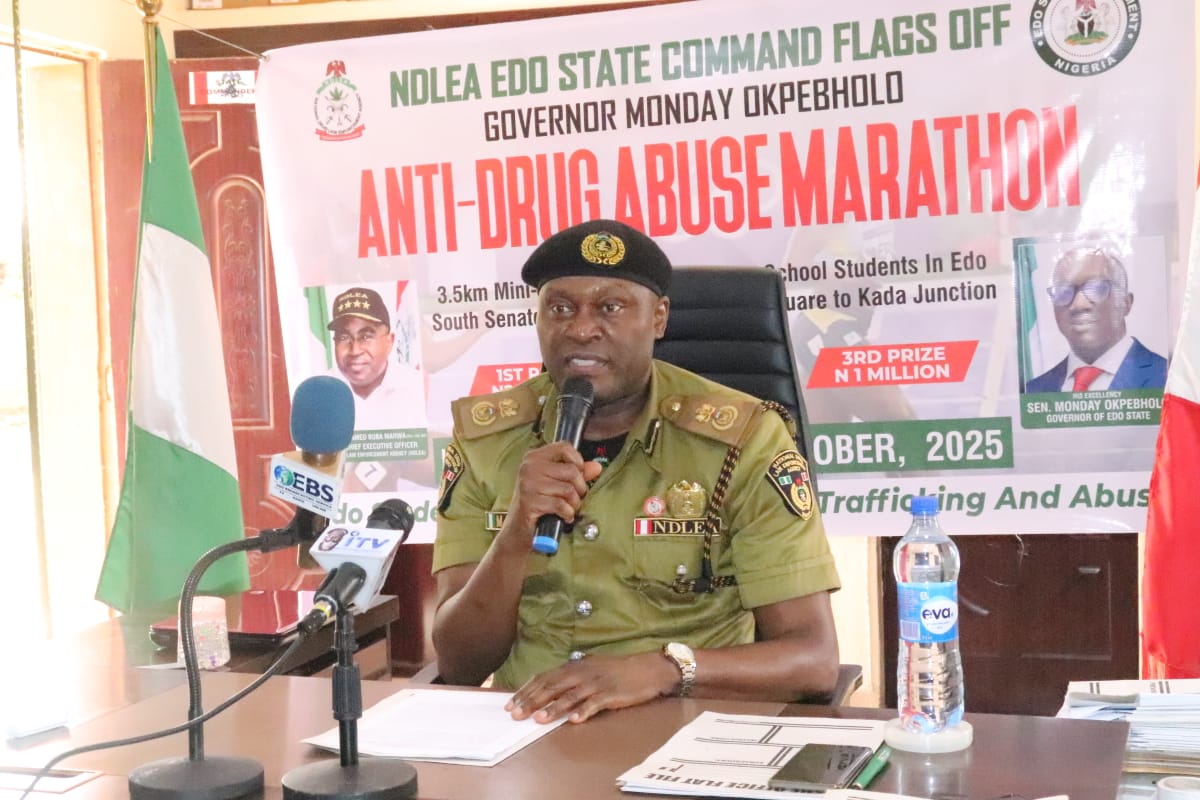 The Edo State command of the National Drug Law Enforcement Agency (NDLEA) in collaboration with the Edo State government has flagged off Governor Monday Okpebholo Anti-Drug Abuse Marathon for secondary schools. The novel initiative aligns with the President Bola Ahmed Tinubu’s renewed hope agenda aimed at early intervention by promoting healthy lifestyles and combating drug abuse among young people. It is also a demonstration of the Command and State government commitment to student empowerment, the NDLEA Commander, Mithell Ofoyeju announced in Benin City, the state capital.