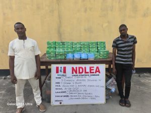 “In Lagos, two suspects: Chinedu Ogbekene and Zindozin Aloukou Bienvenu were arrested on Wednesday 15th April at Mile 2, Lagos/Badagry expressway while conveying 11,900 capsules of tramadol and 400 ampoules of phenobarbital injection in a truck to Ghana. Same day, NDLEA operatives raided a two-storey building at Petti, Lagos Island, where a total of 95.8kg skunk was recovered.