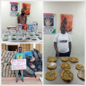 “While commending the officers and men of MMIA, Edo, Delta, Cross River, Kaduna, and Lagos Commands of the Agency for the arrests and seizures, Chairman/Chief Executive Officer of NDLEA, Brig. Gen. Mohamed Buba Marwa (Rtd) noted their drug supply reduction efforts balanced with WADA sensitization activities while he charged them and their compatriots across the country to maintain the current tempo.”