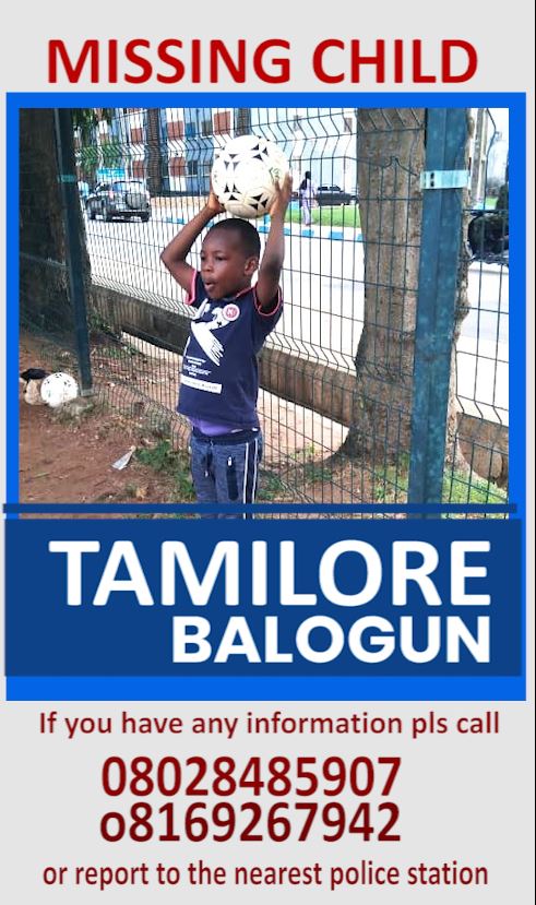 Anyone with information about Tamilore’s whereabouts is kindly requested to contact Mr. Balogun Olayinka on 08028485907 or at his residence, No. 10, Ojewole Street, Onipanu, Lagos.